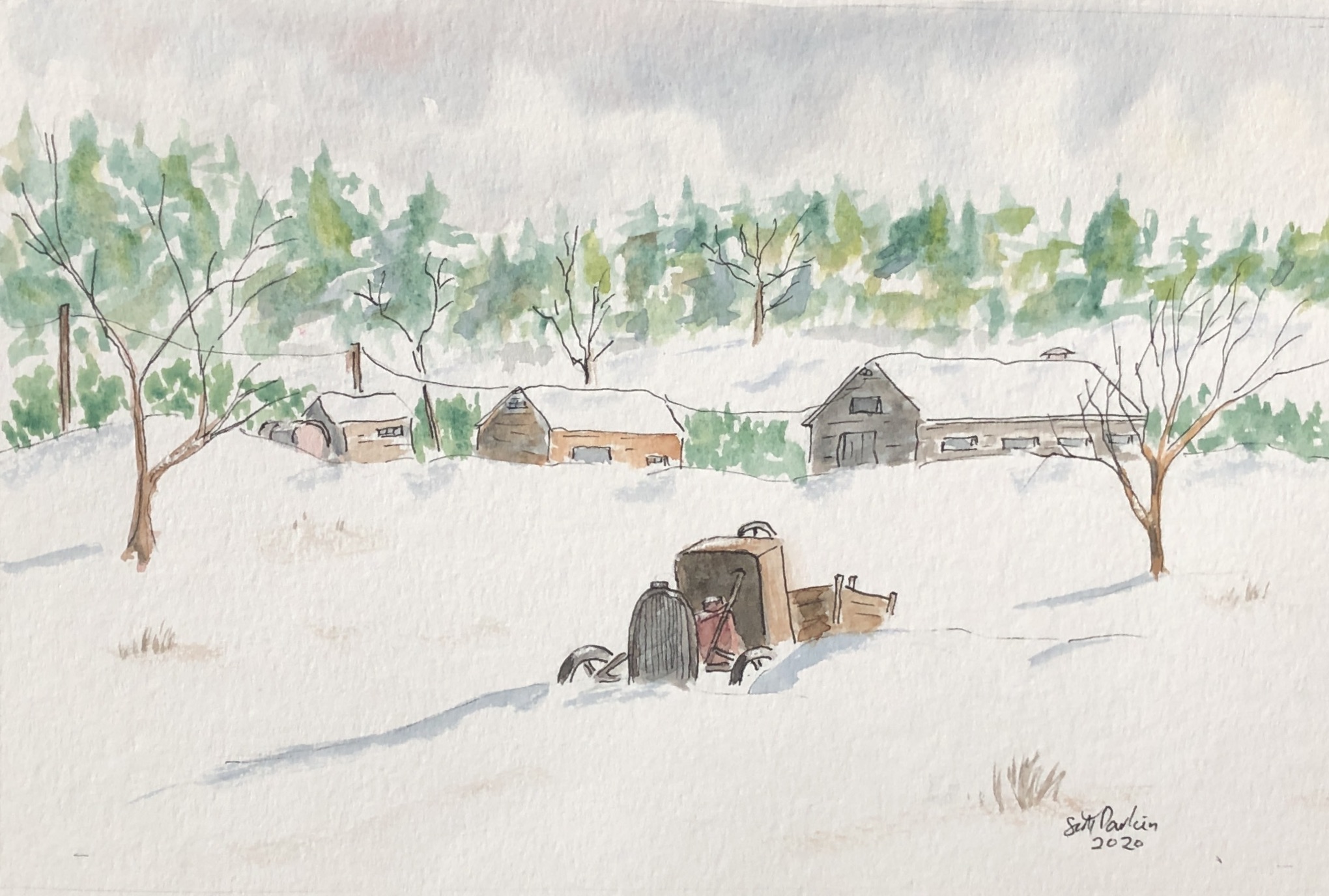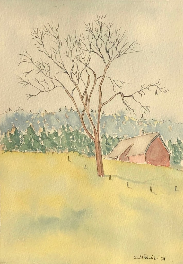 These three watercolors are of a Maine barn in fall, summer and winter. The winter scene is in a private collection. Each are approximately 6 x 9.